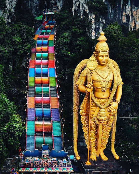 Це чудове місце для занурення в хіндуїстську культуру і релігію. Біля входу до печери розташована вражаюча статуя висотою близько 42 метри, яка зображує бога Мургана. Ця статуя є однією з найбільших статуй Мургана в світі і є символом храму. Входження до печери веде через 272 сходи, які обрамлені кольоровими лісницями і стали популярним місцем для фотографування і релаксації. Після підйому по сходах до вершини печери ми зможемо насолодитись чудовим видом на навколишній ландшафт та місто Куала-Лумпур.